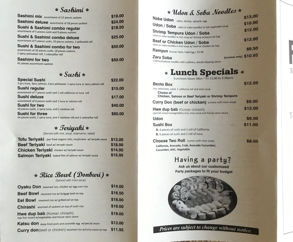 The menu features an enticing range of options, from mini bowls like the savory chicken teriyaki don to more elaborate combinations such as the Sashimi Deluxe. Late-night diners can indulge in unique items like the crispy rice spicy tuna, ensuring satisfaction at all hours.